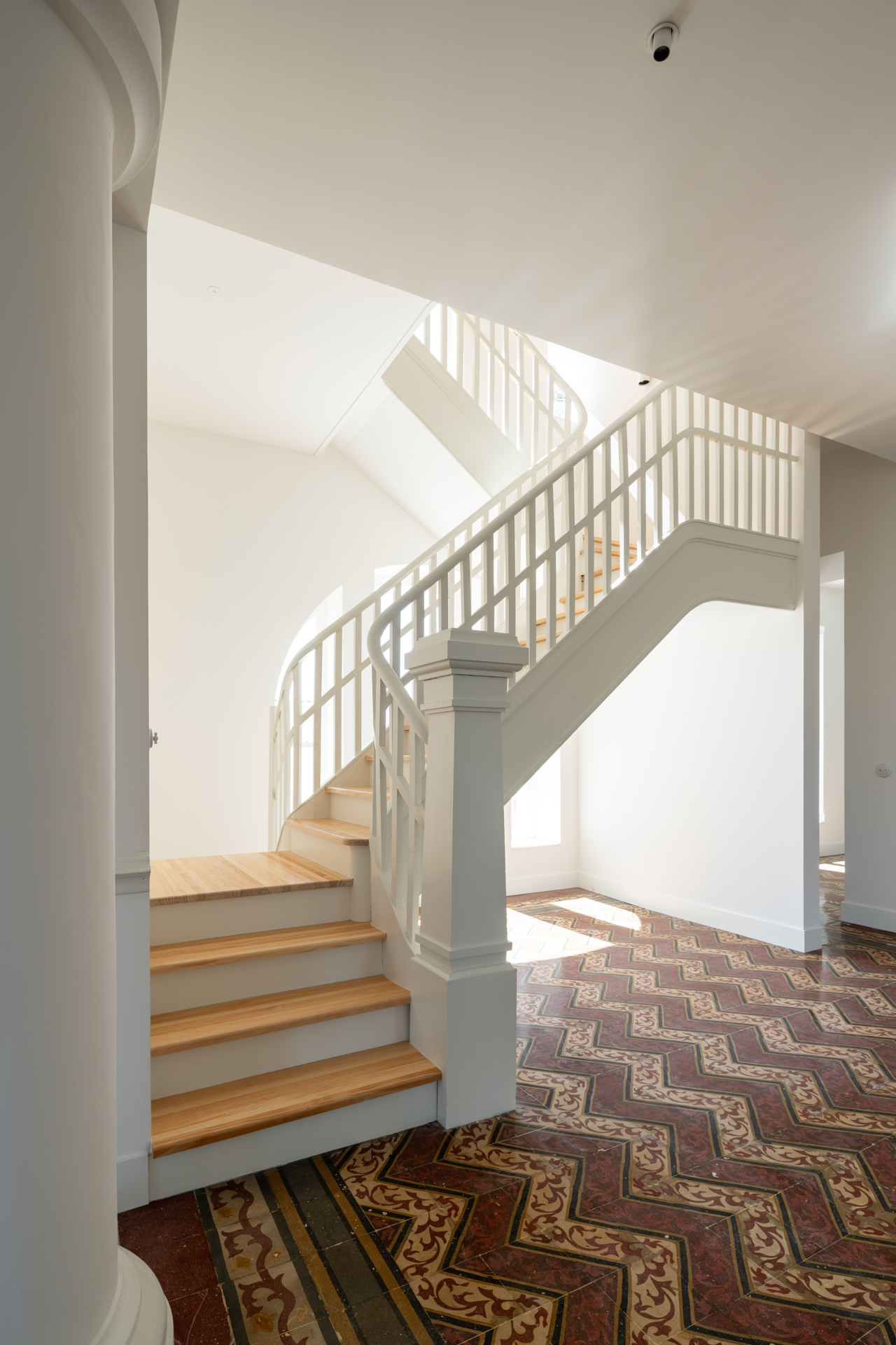 - Restauración de la escalera y de los pavimentos hidráulicos originales.